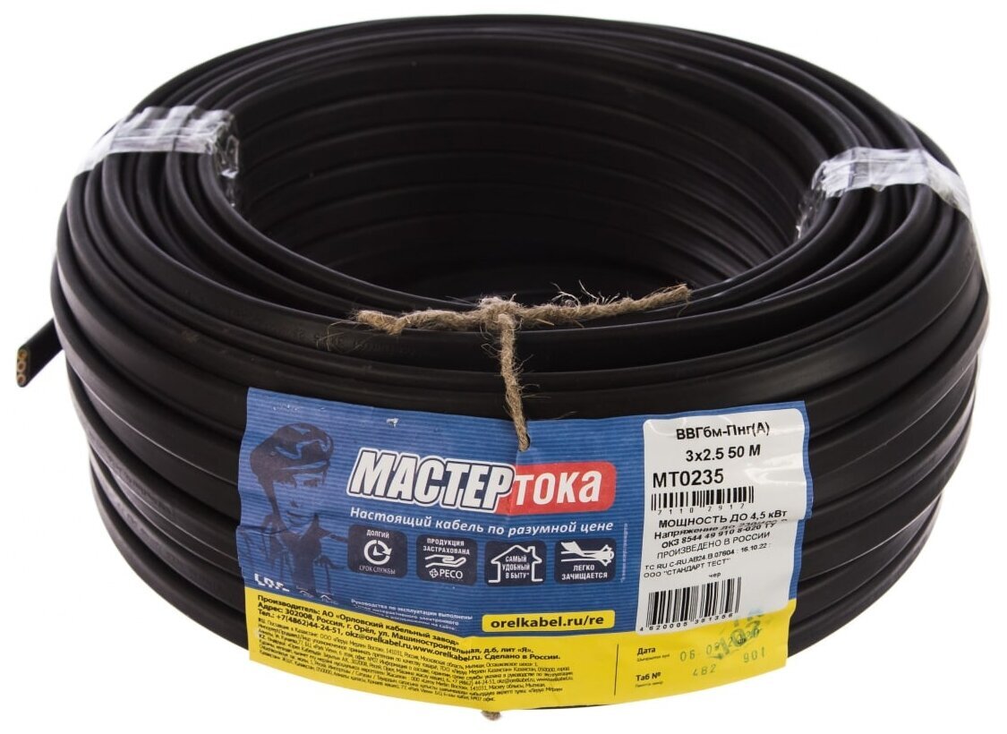 Кабель силовой ВВГбм-Пнг(А) 3x2.5 мм² 50 м Мастер Тока
