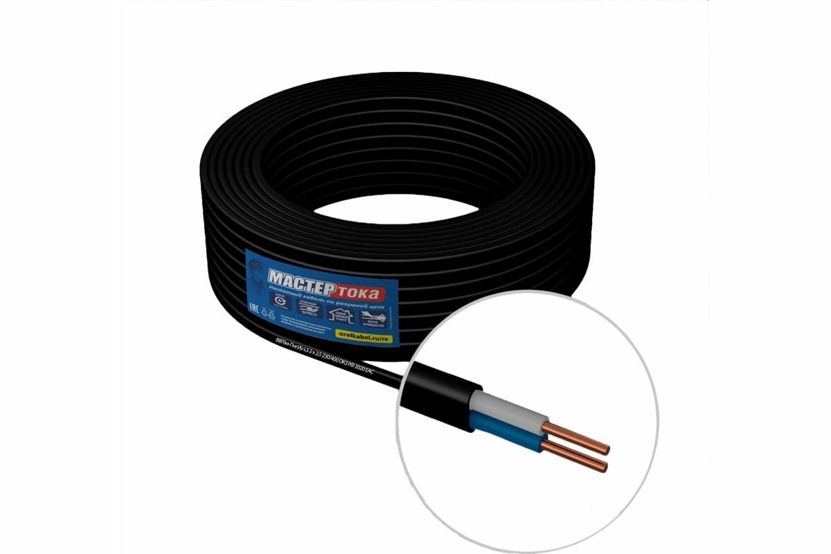 Кабель ВВГбм-Пнг(A)-LS 2х1,5 чер 15 метров Мастер Тока