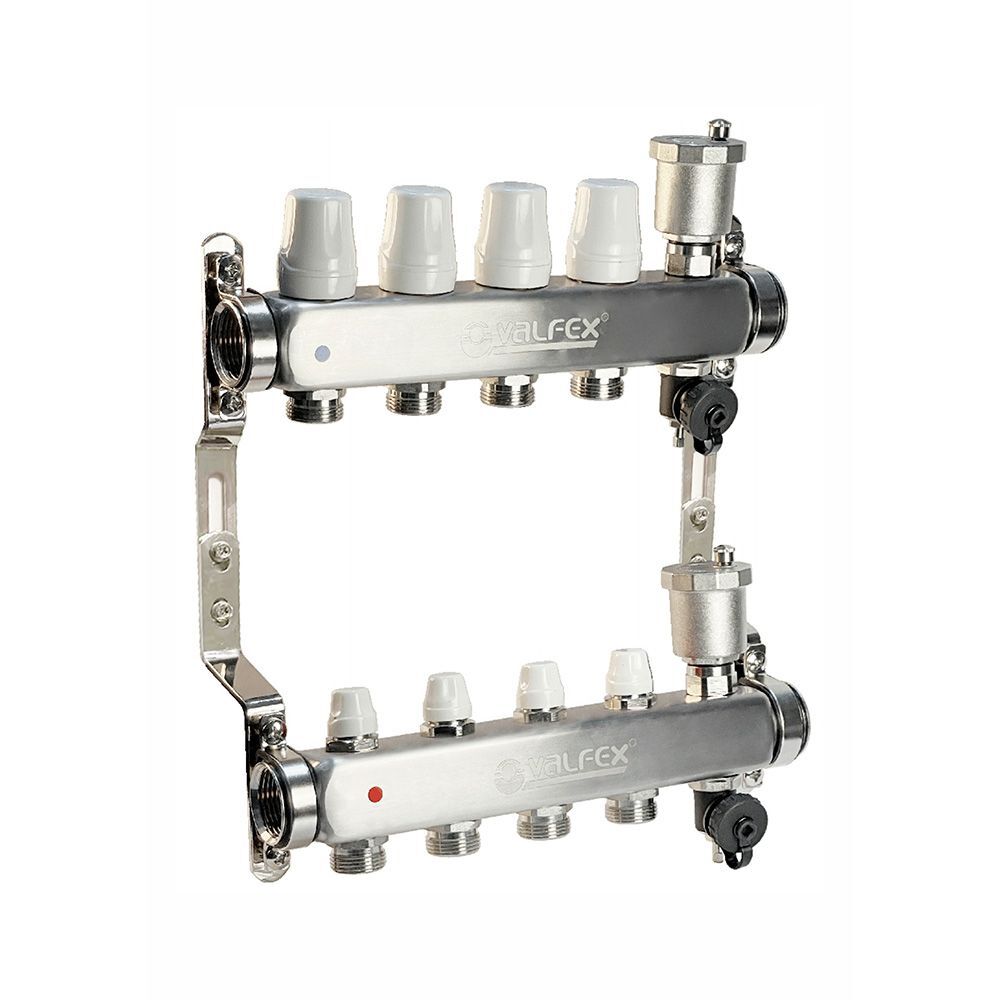 Коллекторная группа из нержавеющей стали с регулирующими и балансировочными клапанами, воздухоотводчиками и дренажными кранами ТМ VALFEX – позволяет с помощью балансировочных клапанов производить балансировку петель при включенном циркуляционном насосе.