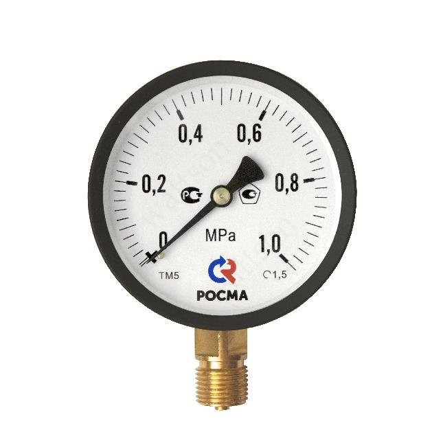 Манометр стандартный используется для измерения избыточного, вакууметрического давления неагресcивных к медным сплавам жидких и газообразных, не вязких и не кристаллизующихся сред с температурой до 150 °C. Корпус манометров в стандартном исполнении выполнен из стали, механизм — из латунного сплава. Принцип действия манометров основан на зависимости деформации чувствительного элемента от измеряемого давления