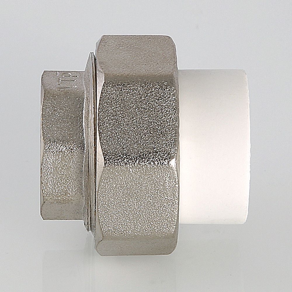 Разъемный соединитель PPR с переходом на внутреннюю резьбу 25х1" Valtec VTp.762.0.02506 - комбинированный пластиковый фитинг с латунной резьбой, который служит для подсоединения к системе отопления или водоснабжения сантехнического компонента.