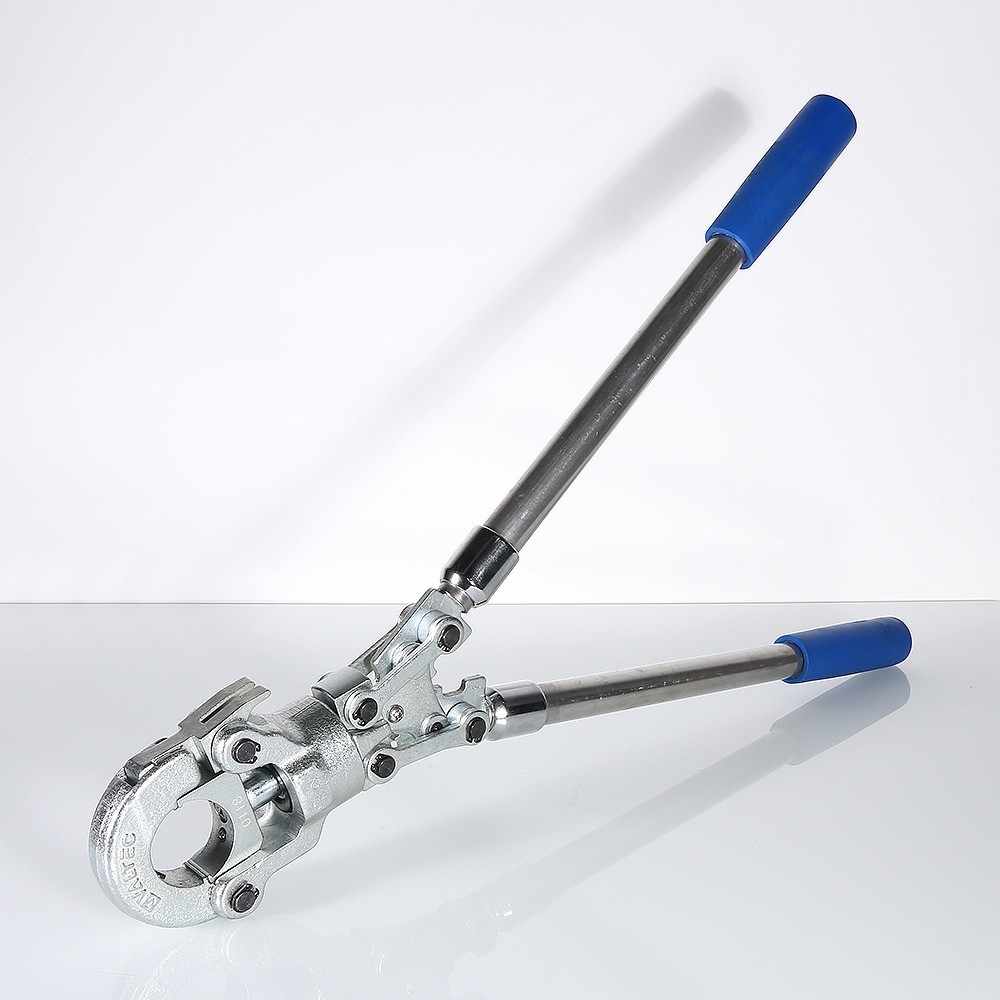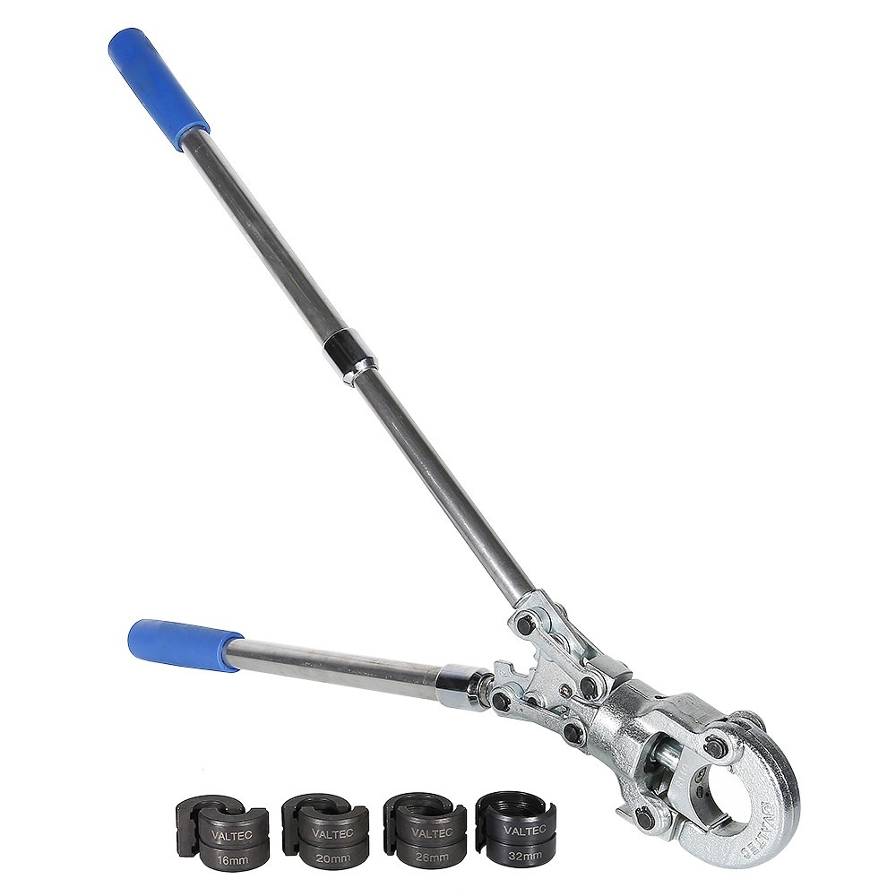 (VTm.293.0) Радиальные клещи для ручного обжатия пресс-фитингов трубопроводных систем из полимерных и металлополимерных труб. Усилие обжатия зависит от длины телескопических рукояток и регулируется также механизмом пресс-головки, которая, кроме того, может поворачиваться относительно рукояток на 360°. Масса пресс-инструмента без насадок – 3,1 кг. Клещи комплектуются насадками с профилем ТН, предназначенными для монтажа пресс-фитингов VALTEC диаметром 16, 20, 26, 32 мм.