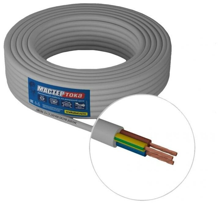Провод ПВСбм 3х1.5 бел (50) Мастер Тока
