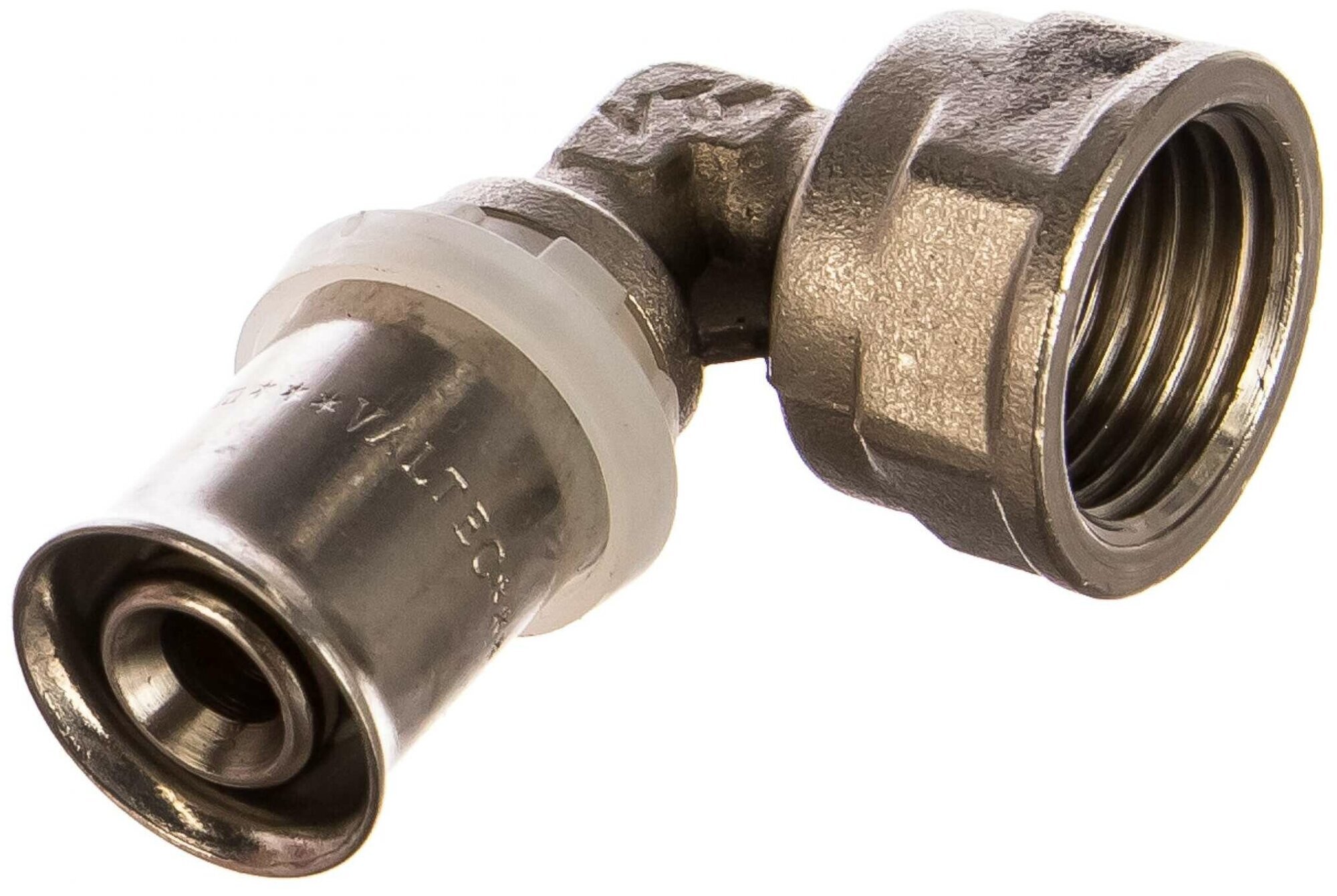 Вниманиеуказана розничная цена, оптовые цены уточняйте У менеджера. Пресс-фитинги VALTEC совместимы с металлопластиковыми трубами типоразмеров 16х2,0, 20х2,0, 26х3,0, 32х3,0, 40х3,5 мм. Монтаж соединений производится пресс-инструментом с наиболее распространенной в России насадкой типа TH. Пресс-фитинги VALTEC рассчитаны на применение в системах с рабочим давлением до 25 бар и температурой до 115 °С. Производственная программа VALTEC включает весь необходимый ассортимент пресс-фитингов для металлопластиковых трубопроводов. Корпус фитинга выполнен из горячештампованной (ГОШ) никелированной латуни марки CW617N по EN 12165 (соответствует марке ЛС 59-2 по ГОСТ 15527). На корпусе с помощью фиксатора из нейлона (PA6) закреплена пресс-гильза из нержавеющей стали AISI 304 (соответствует марке 08Х18Н9 по ГОСТ 5632). В проточках штуцера корпуса надеты два уплотнительных кольца из EPDM (этилен - пропиленового каучука), которые при опрессовке насадкой типа ТН располагаются вне зон обжатия, тем самым повышая герметичность соединения при перепадах температуры. Нейлоновый фиксатор одновременно выполняет роль диэлектрической прокладки и предотвращает возникновение гальванической пары между алюминием и латунью, а также делает трубопровод в целом неэлектропроводным. Монтажный буртик на нейлоновом фиксаторе служит для точной фиксации пресс – насадки инструмента на соединителе. Монтажный раструб гильзы способствует легкому надеванию трубы на штуцер. Прямоугольные окошки нейлонового фиксатора служат для контроля полноты одевания трубы на штуцер фитинга. Фирма Valtec s.r.l. оставляет за собой право вносить в конструкцию соединителей конструктивные изменения, не ухудшающие качества изделий.