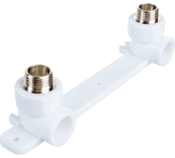 Комплект настенный для смесителя представляет из себя комбинированный полипропиленовый фитинг. Используется для монтажа к трубопроводу и установки смесителя непосредственно на стене. Латунные части производятся методом горячего штампования, пластиковые - методом литья под давлением.